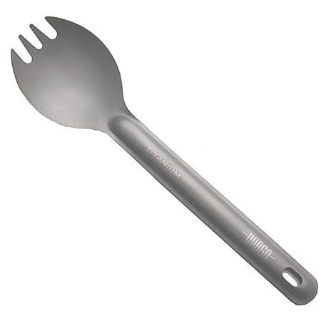 Weighing in at only 0.38 oz, the spork ULV is one of the lightest pieces of cutlery available. The ULV has a broader spoon part than most sporks. Matte finish. 6" in length.
