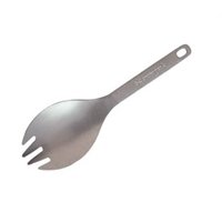 214964 Features: Make savings in space and weight with the short length of this handy little titanium design that weighs in at a mere half ounce Keep your backcountry dining a little safer with a naturally sanitary eating surfaced caused by the antibacterial film coating the titanium's surface as a result of oxidation Specifications: Weight: 5 ounces Material: titanium